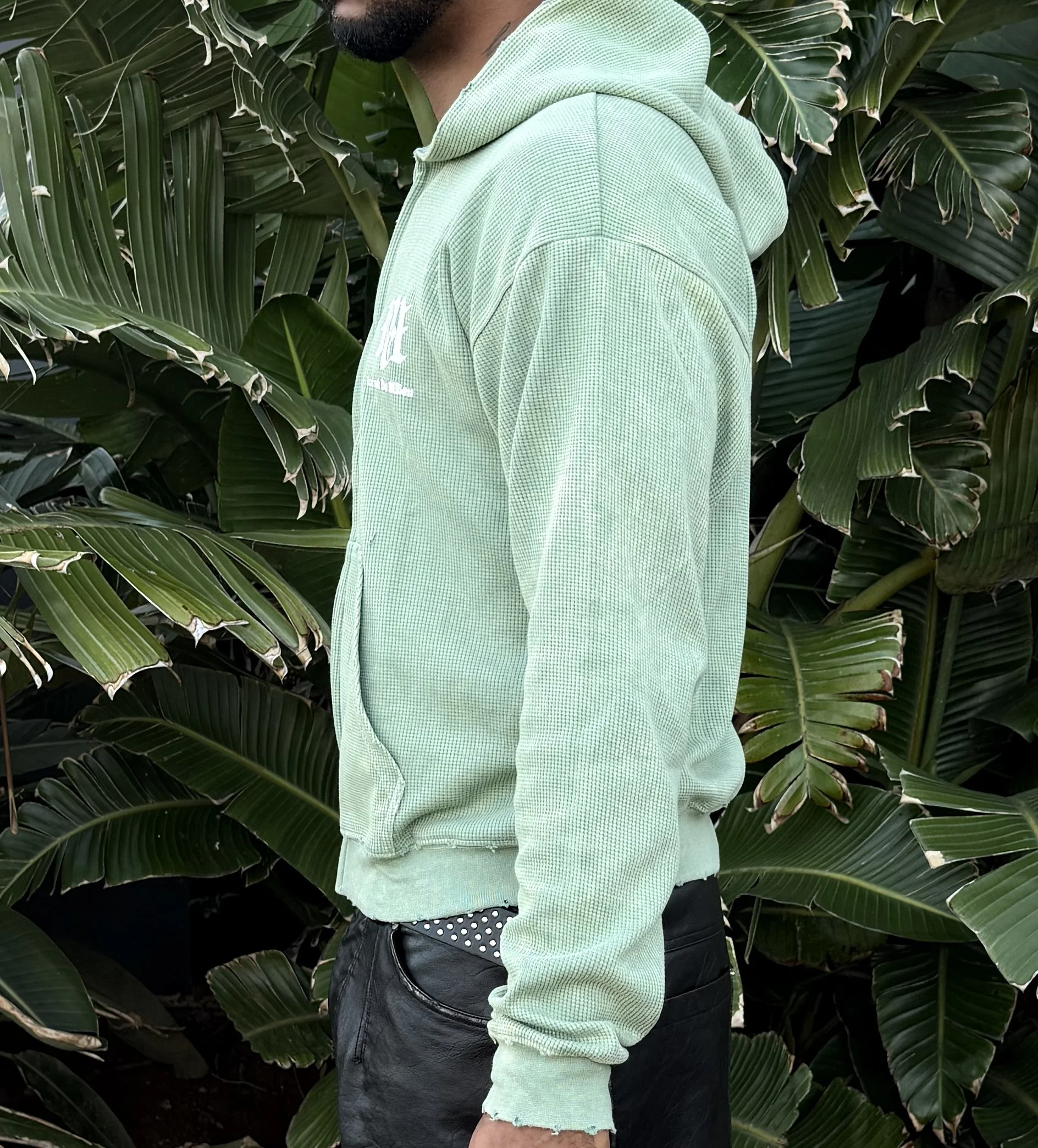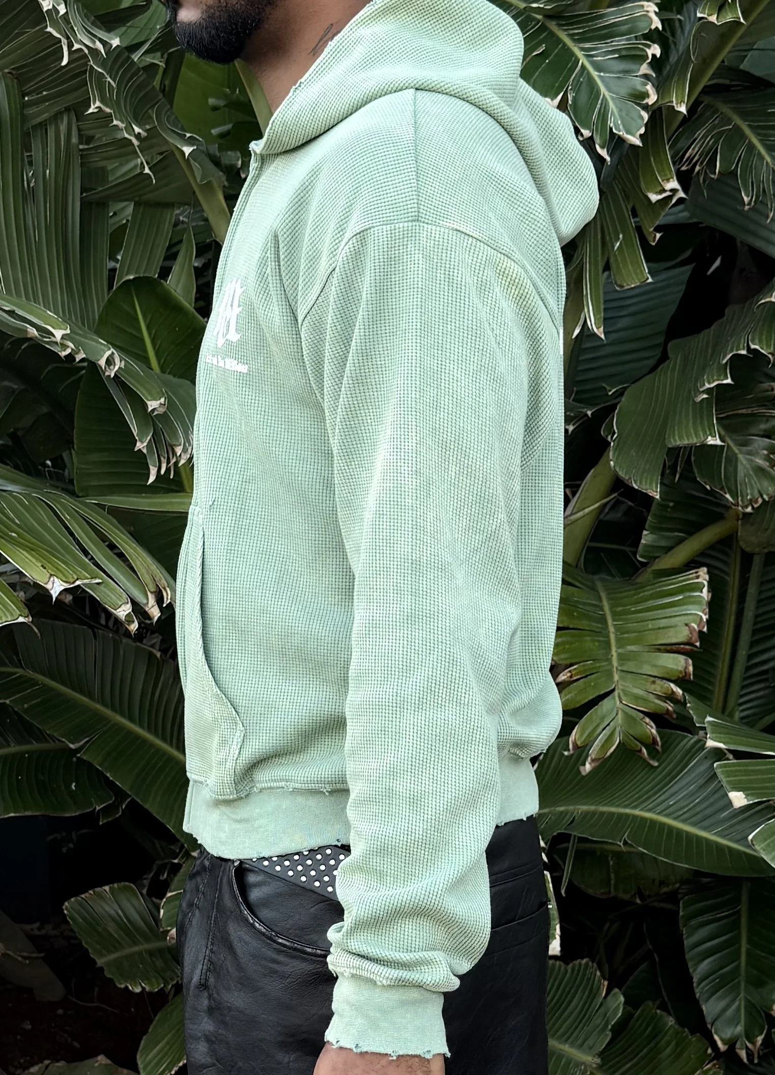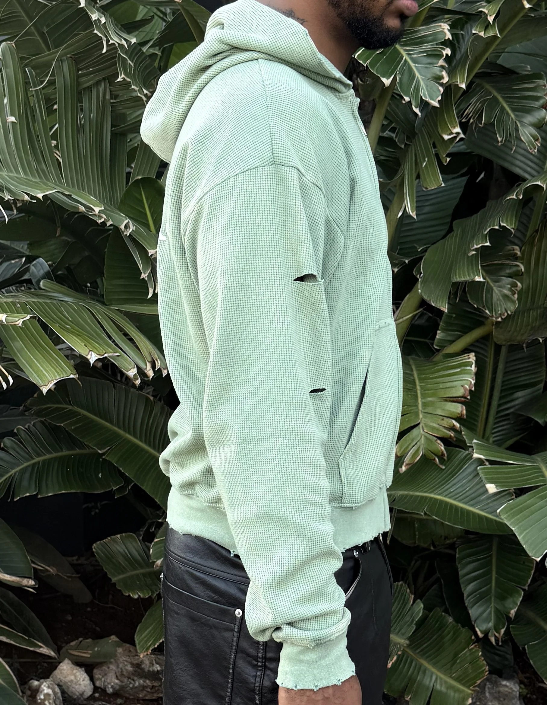 Waffle knit zip hoodie.